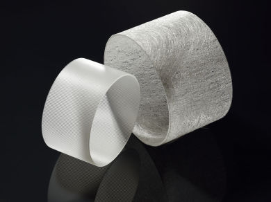 Gewebe, Fließ und Granulate sind hier auf verschiedenen Grundmaterialien (PMMA,PC,PETG, usw.) eingearbeitet.